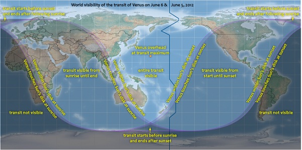 -����� 5th: Venus transits the face of the Sun as seen from the Earth. This transit will be visible from the eastern US at sunset westward to northeastern Africa and Europe at sunrise� don�t miss this celestial happening of our lifetimes, as another transit won�t be visible until December 11th, 2117!